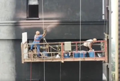 真石漆噴涂機 溫馨走進施工現場 展示團隊關